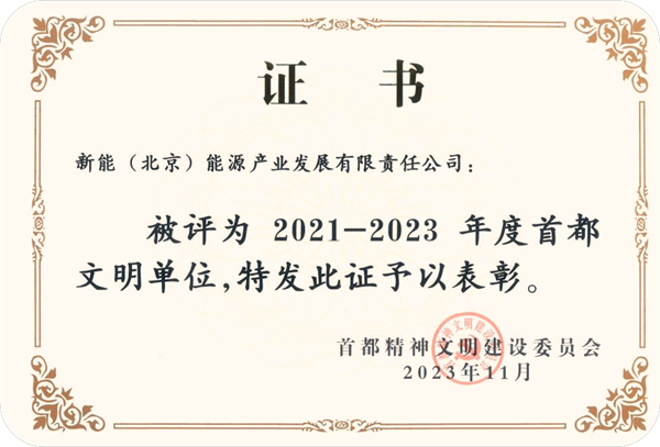 喜報(bào)!新能(北京)公司榮獲“首都文明單位”稱號(hào)